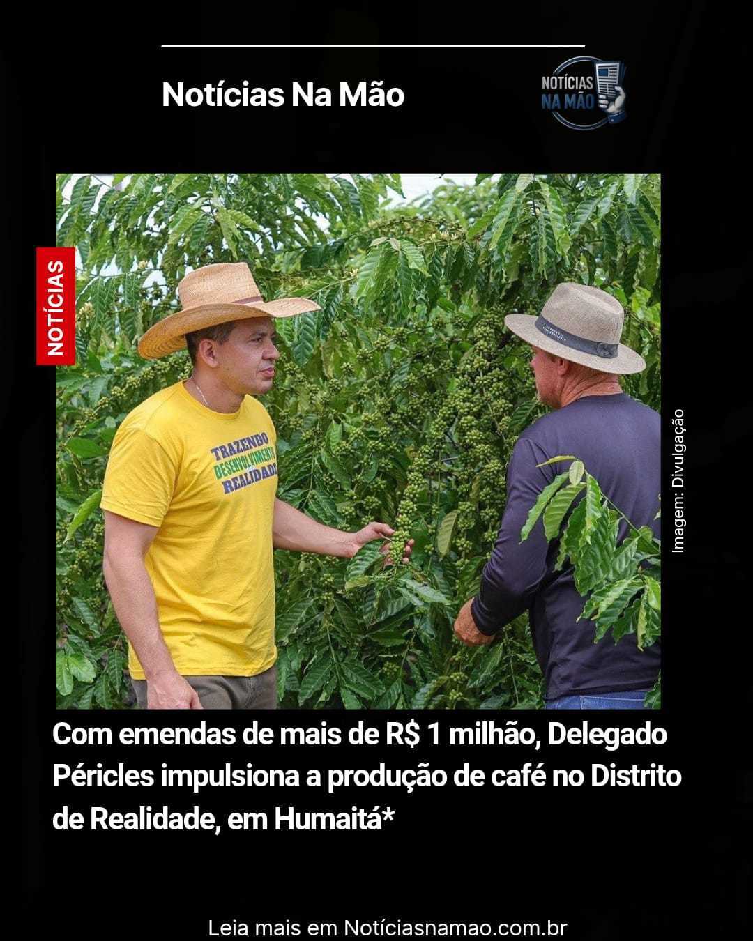 Com mais de R$ 1 milhão já destinados à produção de café no Distrito de Realidade, zona rural de Humaitá (a 696 quilômetros de Manaus), o deputado estadual Delegado Péricles (PL) vem fortalecendo a cadeia produtiva local e impulsionando o desenvolvimento econômico da região sul do Amazonas.