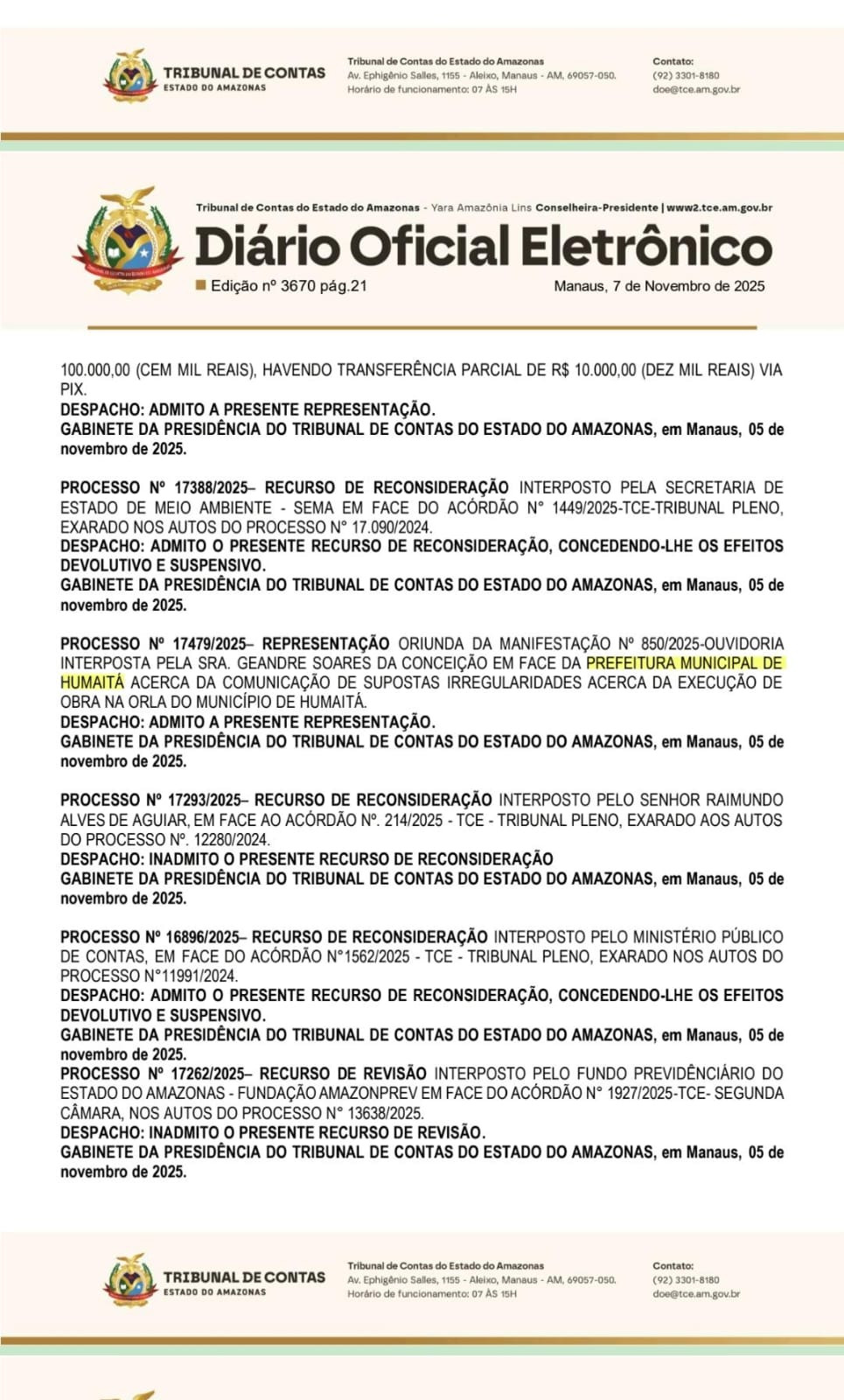O Tribunal de Contas do Estado (TCE) decidiu dia 05 deste mês que o prefeito de Humaitá, José Cidinei Lobo do Nascimento, conhecido como “Dedei Lobo” será investigado por supostas irregularidades na execução de obra na orla do Município.