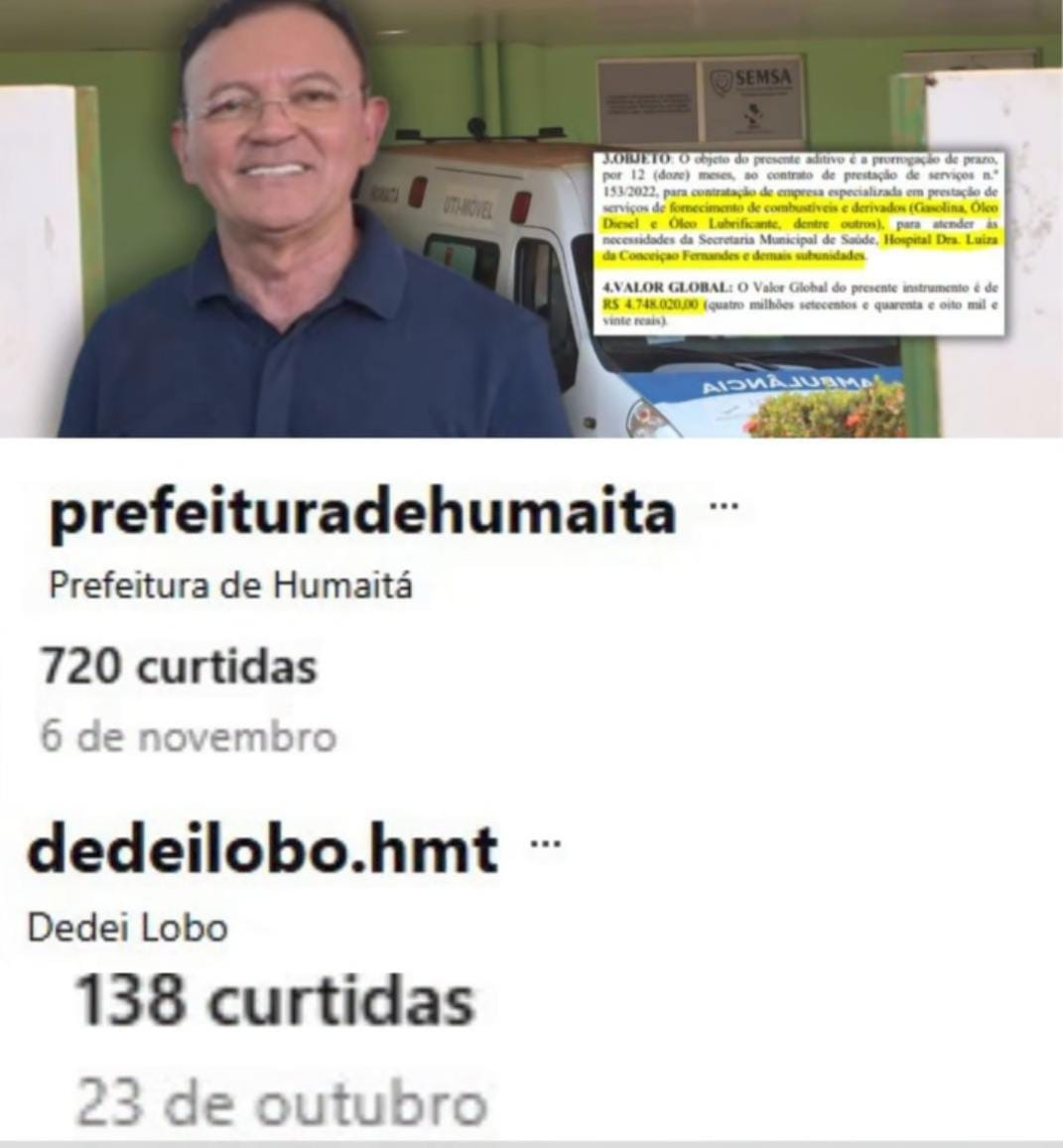 A Prefeitura de Humaitá e o prefeito Dedei Lobo parecem ter sérias dificuldades com transparência. Nas redes sociais, tanto o Instagram oficial da prefeitura quanto o perfil do próprio prefeito seguem praticamente abandonados, com postagens antigas de meses atrás, um claro distanciamento da população que deveria ser informada sobre o uso do dinheiro público.
