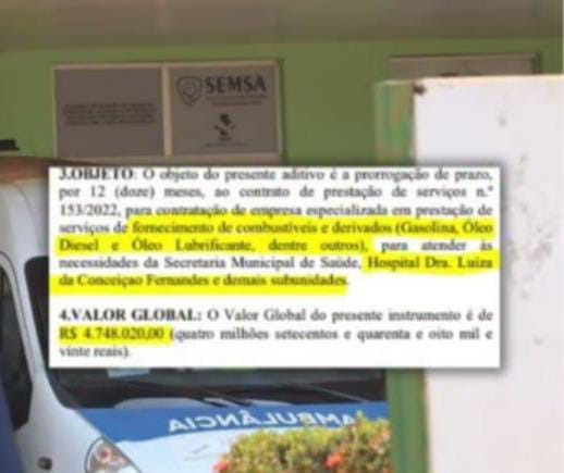 Enquanto falta comunicação, os contratos suspeitos aparecem. Um dos exemplos mais gritantes é o contrato de mais de R$ 4,7 milhões para a compra de combustíveis e derivados destinados ao Hospital de Terapia Intensiva (UTI) do município.