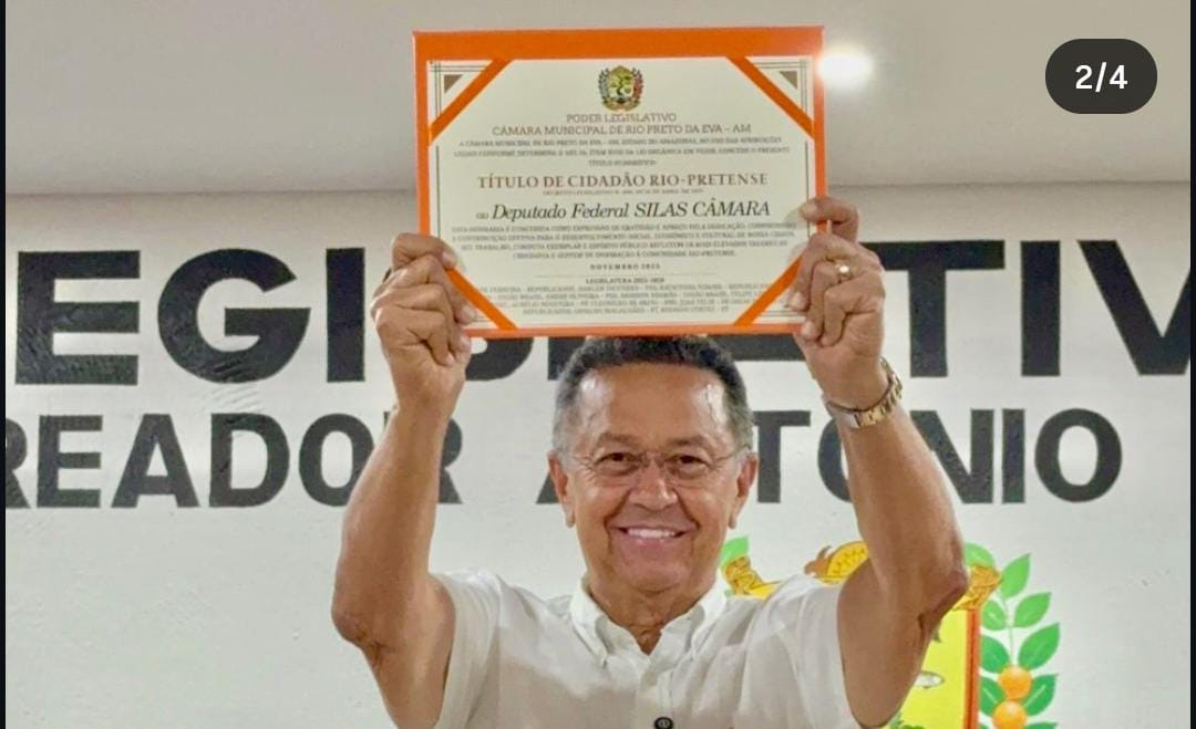 Em uma cerimônia realizada no município de Rio Preto da Eva, o deputado Silas Câmara foi agraciado com o título de Cidadão Rio-Preto-Pretense, uma honraria que, segundo ele, recebe com profunda gratidão, respeito e senso de responsabilidade.