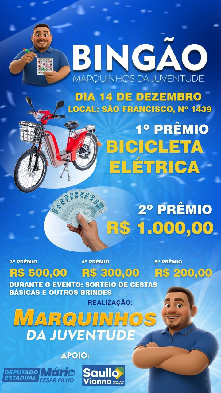 Segundo Marquinhos, idealizador do projeto, a expectativa é que o Bingão se torne uma tradição anual no município. Entre os prêmios anunciados estão uma bicicleta elétrica, o valor de R$ 2.000 em dinheiro e o sorteio de cestas básicas, além de outros brindes que serão distribuídos ao longo da programação.