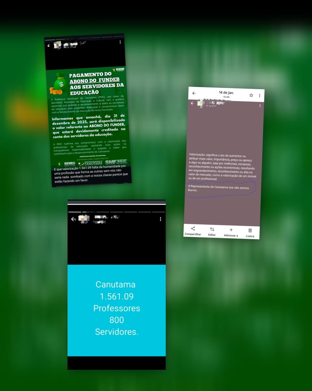 Para entendermos o caso, antes da ligação do secretário, o professor Jonas utilizou suas redes sociais pessoais para questionar o valor do abono do FUNDEB referente ao ano de 2025, pago no montante de R$ 1.561,09.