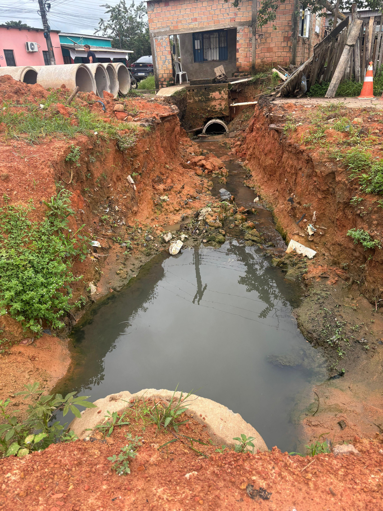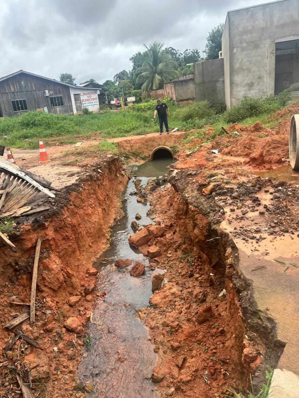 A obra está localizada na Avenida Brasil, com a Rua Castro e Silva, no bairro São Francisco, um ponto de grande circulação, o que torna a situação ainda mais delicada.