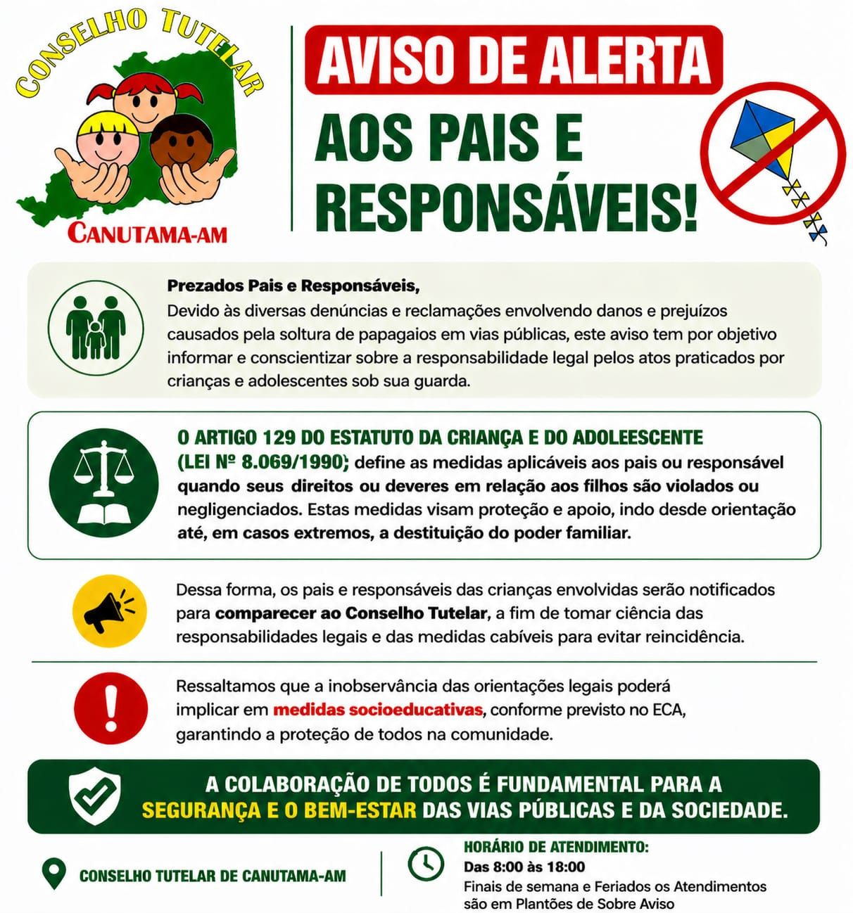 O Conselho Tutelar reforça que a colaboração da população é fundamental para evitar acidentes, prejuízos materiais e situações de risco nas ruas do município.