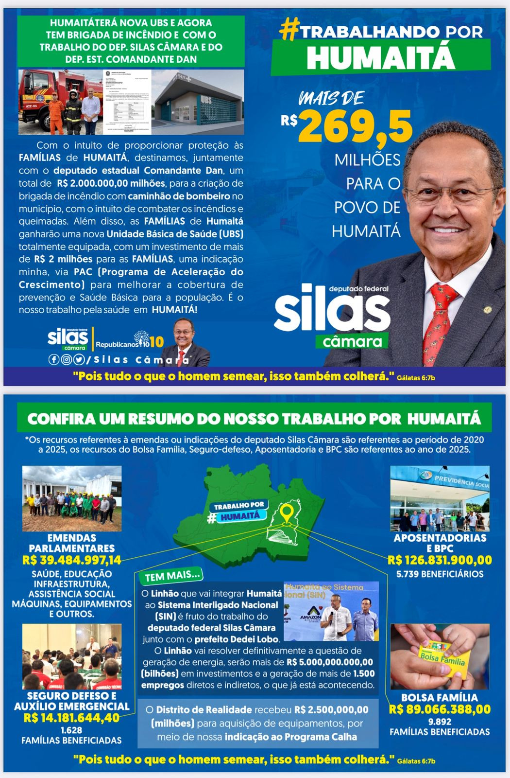 HUMAITÁ (AM) – O Deputado Federal Silas Câmara, "Cidadão de HUMAITÁ por adoção" e o parlamentar mais votado do município por cinco vezes, lançou uma prestação de contas digital focada nos últimos cinco anos de seu mandato. O objetivo é demonstrar o impacto direto de seu trabalho na melhoria da vida da população humaitaense.